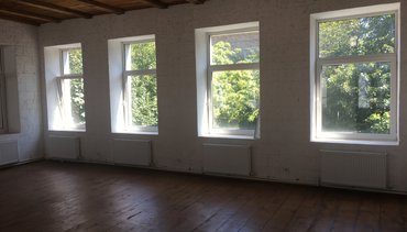 Большое офисное помещение с собственным входом по лестнице. Без мебели. Хороший офисный ремонт.